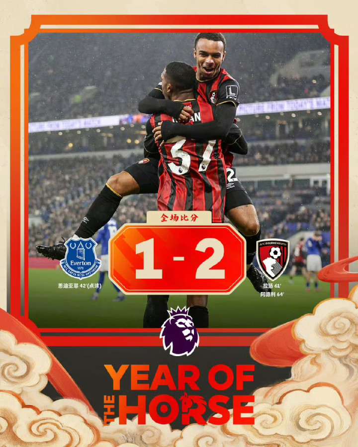伯恩茅斯2-1埃弗顿